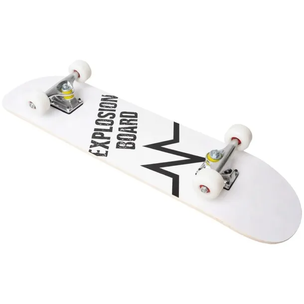 Młodzieżowa deskorolka MASTERExplosion Board - White to świetny wybór zarówno dla początkujących jak i zaawansowanych skateborderów. Trwała i solidna wykonana z 9 warstw konstrukcja jest lekka i świetnie nadaję się do nauki i jazdy rekreacyjnej. Poliuretanowe kółka na łożyskach ABEC7 zapewnią nam szybkość i płynność jazdy. Modny i młodzieżowy design na pewno będzie odpowiadał najbardziej wymagającym gustom.