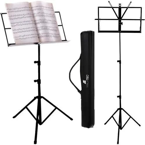 Malowany proszkowo, metalowy statyw do nut. Posiada trójnożną podstawę i regulowaną wysokość. Pulpit jest składany. Statyw jest polecany zarówno dla profesjonalistów, jak i amatorów.